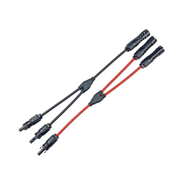 One pair of Solar 2 to 1 Y-Branch Connectors for solar panels. Includes both M/F/F and F/M/M. Used for parallel connection between panels and maintain the voltage of your panel configuration.